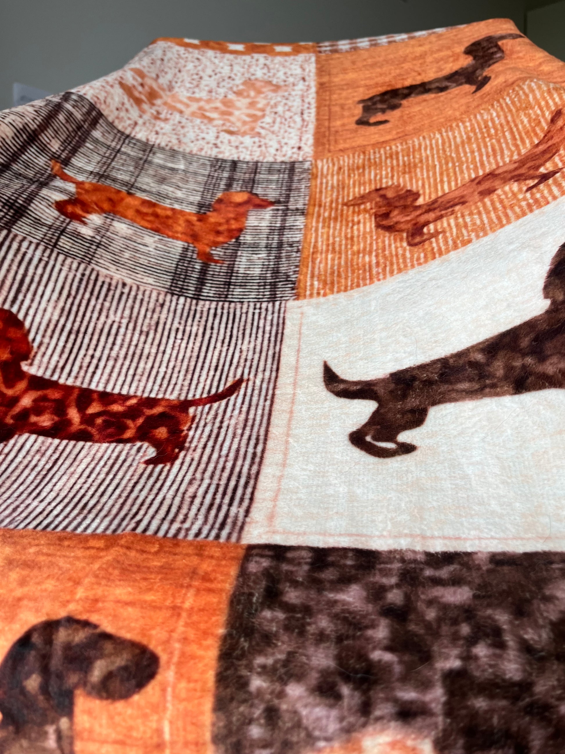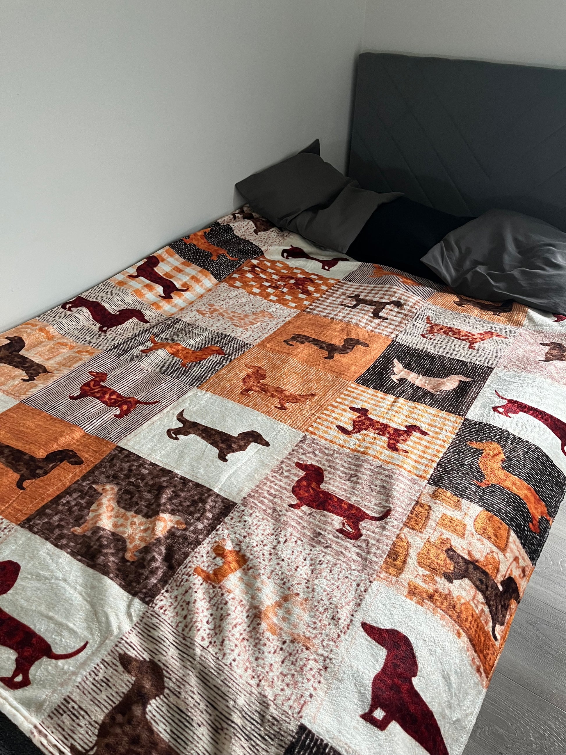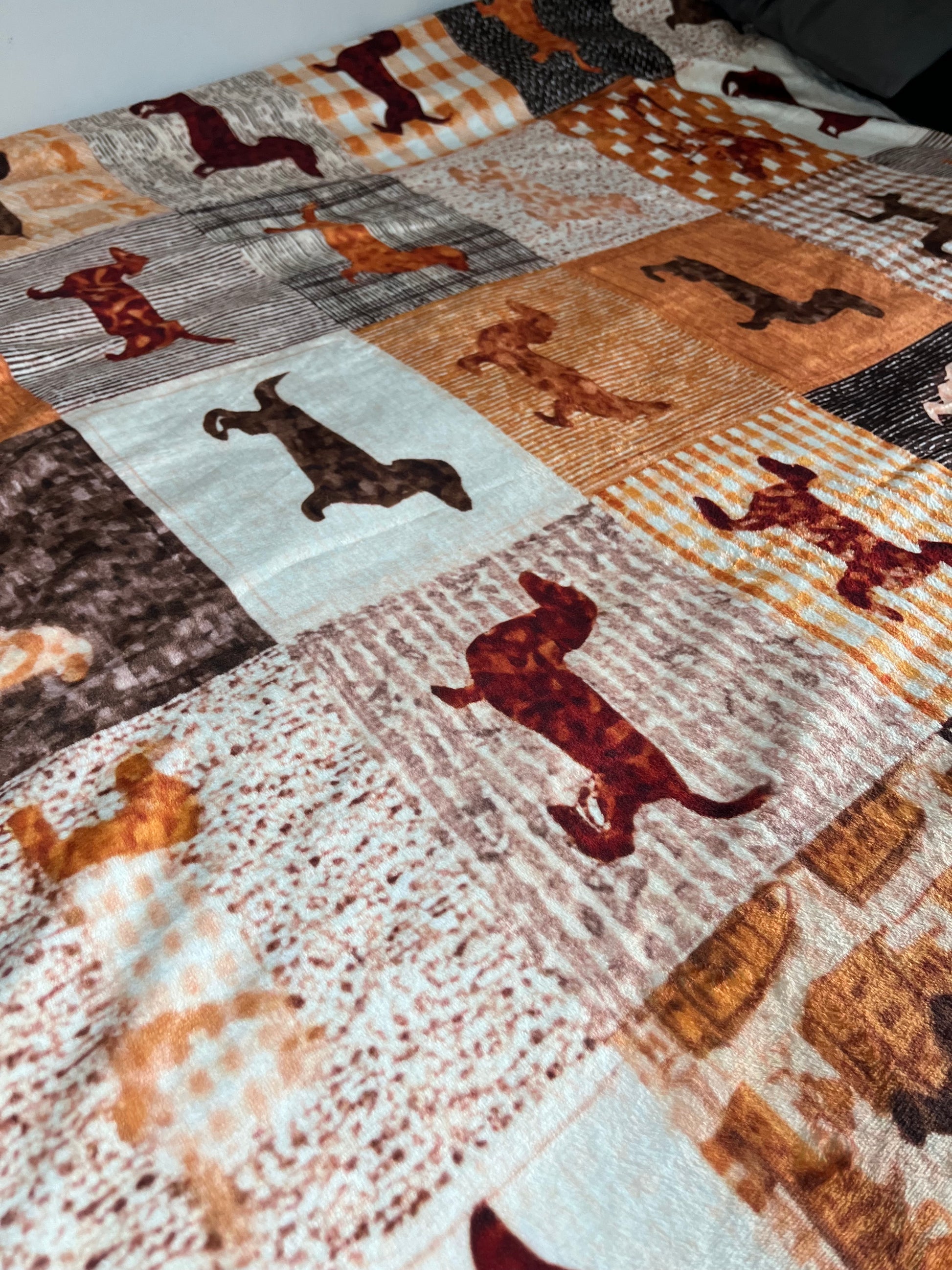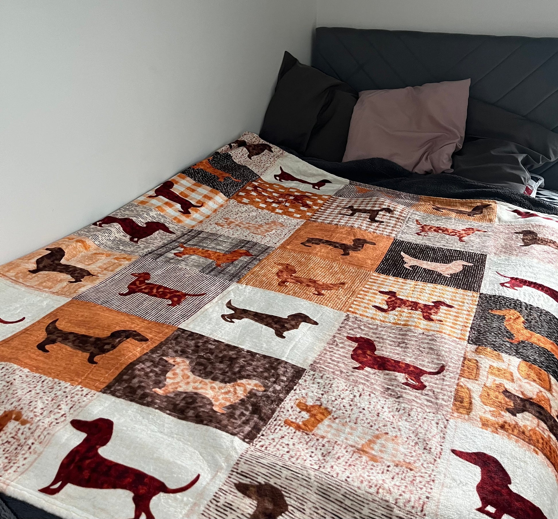 Ciesz się ciepłem i stylem z tym ultramiękkim flanelowym kocem w stylu retro z jamnikiem — idealnym na przytulne wieczory lub dodanie odrobiny uroku do Twojego pokoju!
